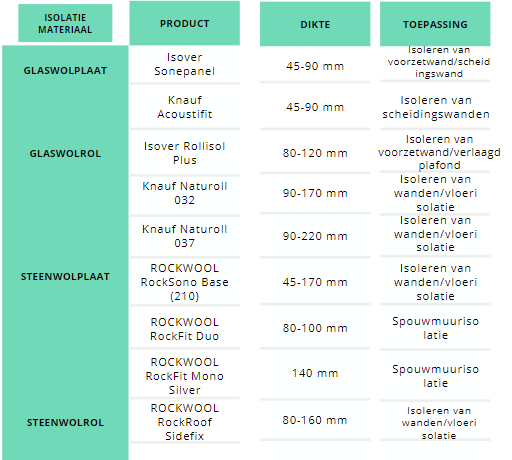 Hierboven heb je kunnen lezen dat wanneer het om geluidsisolatie gaat glaswol de beste optie blijkt te zijn. Wel is het belangrijk dat het product ook goed bij jouw woning en je verwachtingen past. Met behulp van het schema hieronder kan je bepalen welk isolatiemateriaal jou gaat helpen om de geluidsoverlast te laten verdwijnen.